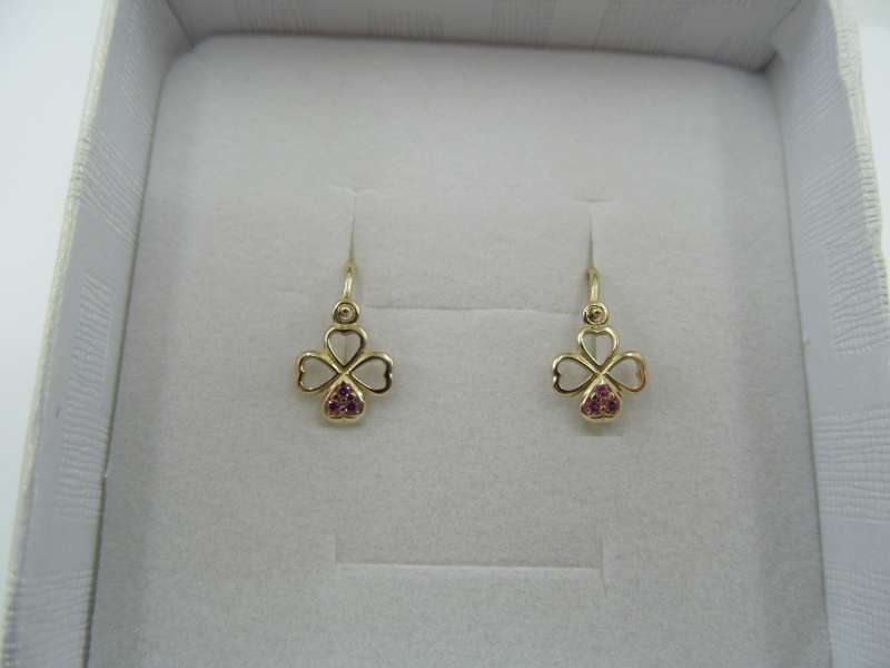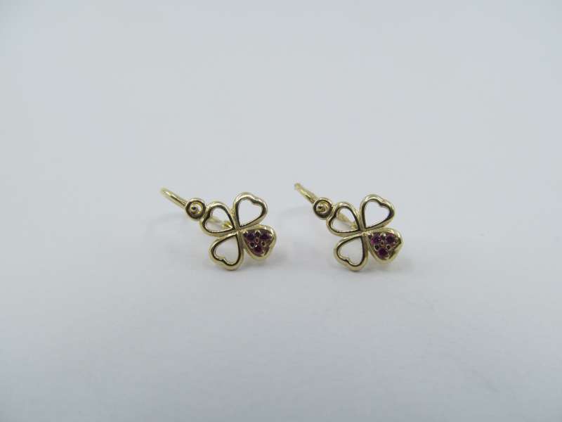 Zlaté dětské náušnice s červenými zirkony, přední zapínání, 0,80 g, 585/1000