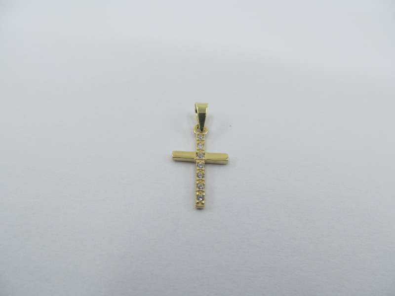 Zlatý přívěs kříž se zirkony, 0,60g, 585/1000, 10 x 15 mm