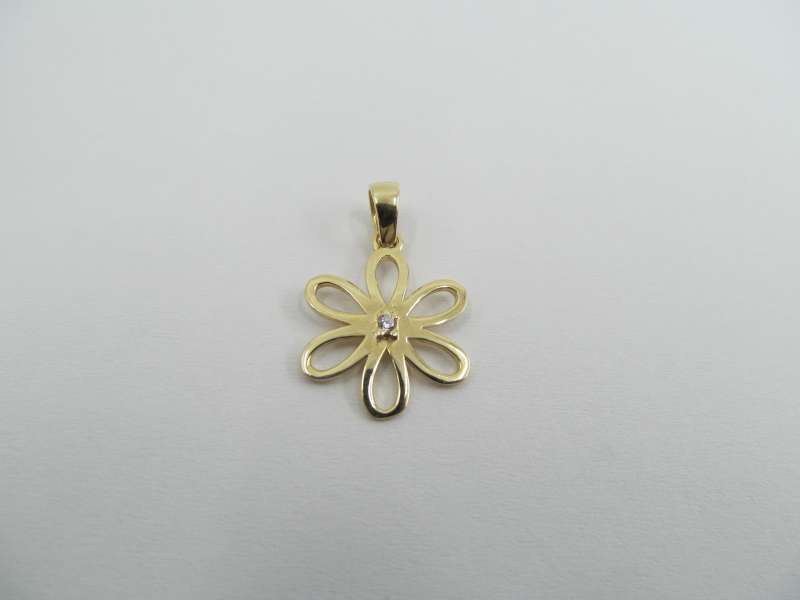 Zlatý přívěs kytička se zirkonem, průměr 1,3 cm, 0,96 g, 585/1000