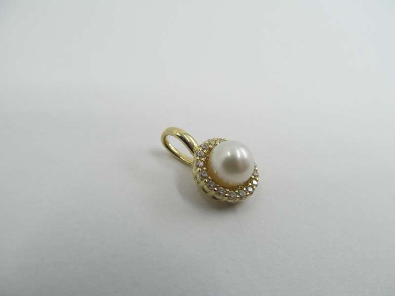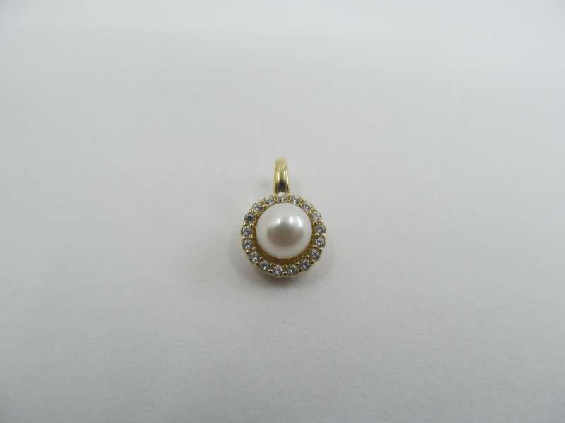 Zlatý přívěs s říční perlou a zirkony, půrměr přívěsu 1 cm, 1,45g, 585/1000