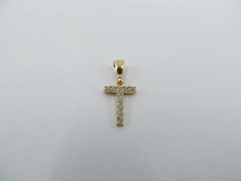 Zlatý přívěs se zirkony, písmeno T, 0,50 g, 585/1000, 11 mm