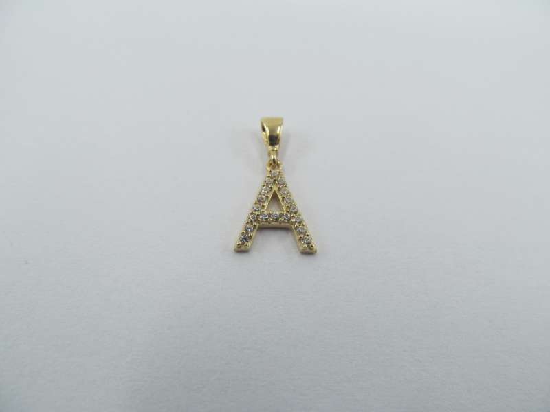 Zlatý přívěs se zirkony, písmeno A, 0,60 g, 585/1000, 11 mm