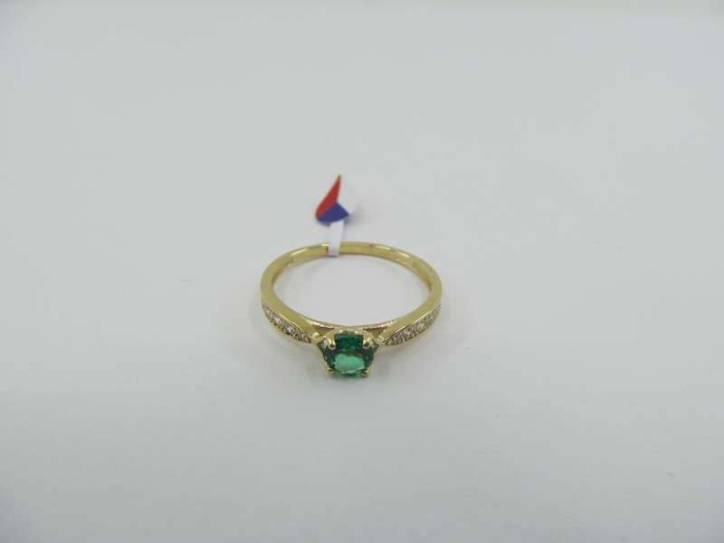 Zlatý prsten se zeleným zirkonem, vel. 54, 1,40g, 585/1000
