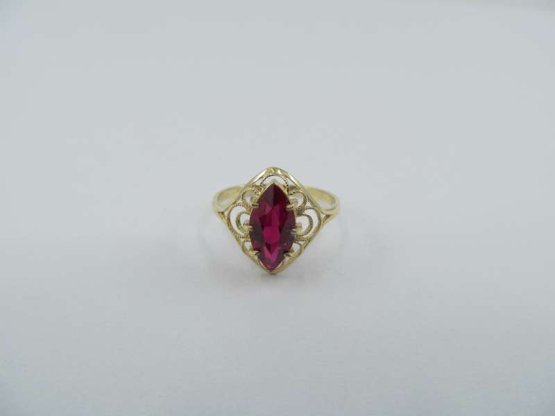 Zlatý prsten se syntetickým rubínem, vel.54, 1,90 g, 585/1000